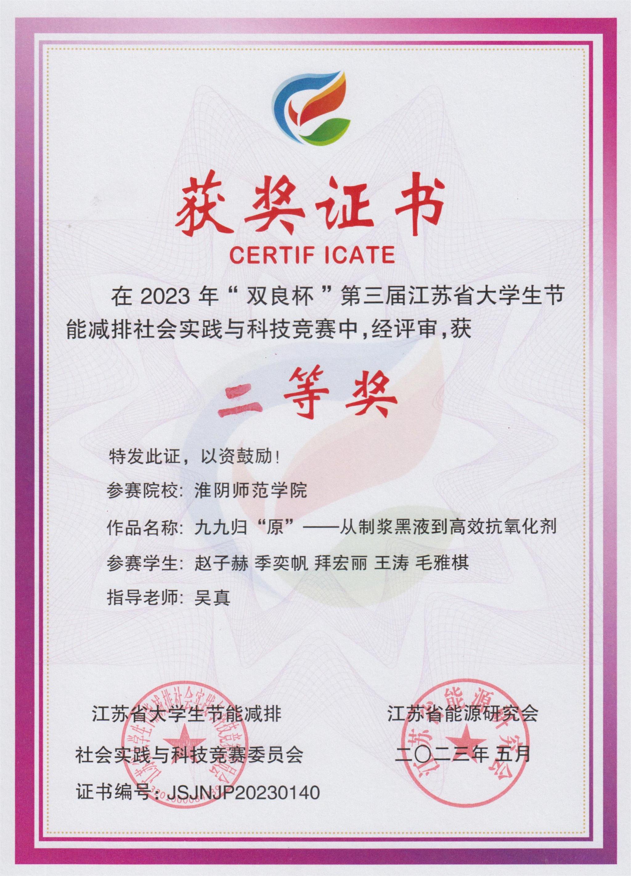 九九归“原”——从制浆黒液到高效抗氧化剂(学生:赵子赫,季奕帆,拜宏丽,毛雅棋,王涛;指导老师:吴真)