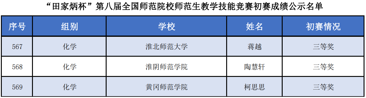 近期,2022~2023年度各项师范生教学技能大赛陆续举行,77779193永利官网捷报频传:3月5日,第十一届江苏省师范生教学基本功大赛(中学理科组)在南通大学举行,我院陶慧轩同学喜获一等奖、章雨婷同学荣获三等奖;4月16日,“田家炳杯”第八届全国师范院校师范生教学技能竞赛在浙江师范大学举行,我院陶慧轩同学获得三等奖;5月6日,第四届长三角师范生教学基本功大赛拟获奖名单公示,我院陶慧轩同学获得三等奖。
