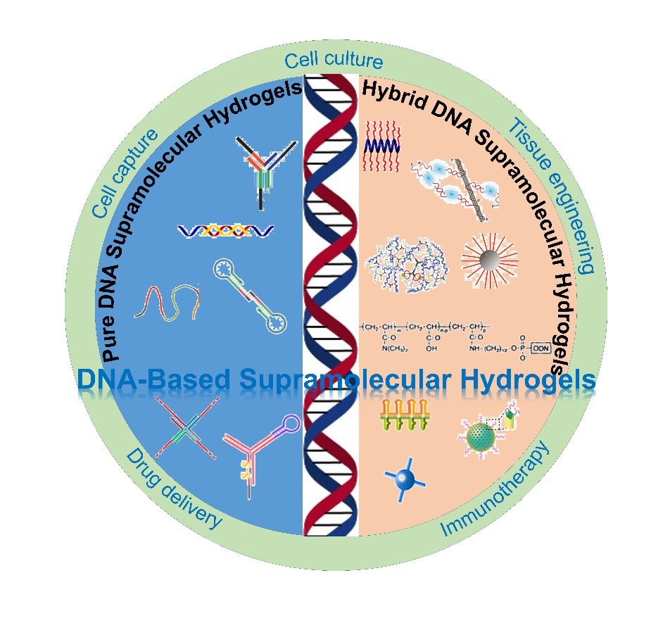 基于DNA的超分子水凝胶材料,由于其固有的生物相容性和可调的物理化学性质,是一种重要且有前景的生物材料。在该类水凝胶材料的结构中,以非共价键动态交联形成的DNA三维超分子网络,为其提供了卓越的适应性、自愈性、可注射性和响应性等特性。此外,由于DNA水凝胶具有类似生物组织的力学特性和内在的生物学功能,也是理想的生物支架材料。在从技术上讲,DNA可以通过纯粹的碱基互补配对组装形成超分子网络;DNA也可以与其他构建模块结合来构建杂化超分子水凝胶。本论文就DNA超分子水凝胶的最新研究进展及其构建策略进行了详细总结与介绍,综述了DNA超分子水凝胶的组装与合成方法、刺激响应性及其在生物医学上的主要应用。最后,本论文还讨论了基于DNA的超分子水凝胶所面临的挑战和发展前景。