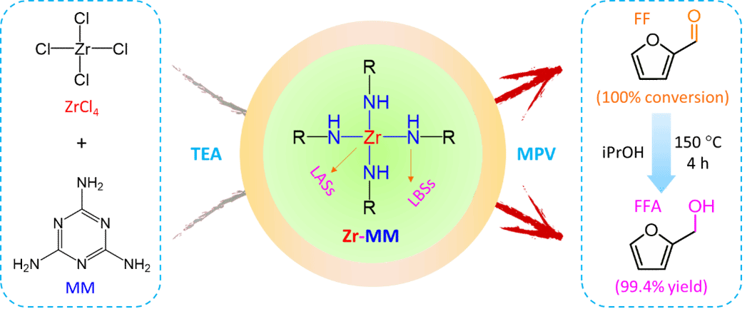 近日,淮阴师范学院生物质能团队在《Chemical Engineering Journal》期刊上发表了题为“Highly selective transfer hydrogenation of biomass-derived furfural to furfuryl alcohol over a zirconium-melamine coordination catalyst without Brønsted acid sites”的研究论文,该论文由淮阴师范学院与广东工业大学合作完成,淮阴师范学院为第一完成单位,相关研究得到了国家自然科学基金面上项目和区域创新发展联合基金项目的支持。《Chemical Engineering Journal》是化学工程领域的国际知名期刊,最新分区为中科院一区,影响因子为15.1。