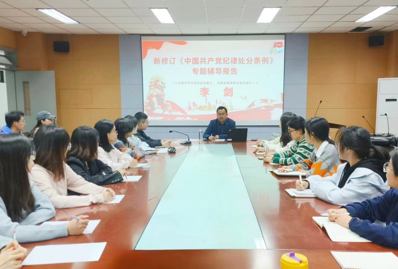 下午,各支部召开全体党员会议,开展党纪学习教育集体学习,落实学院党委要求,推动《中国共产党纪律处分条例》入脑入心。晚上,新能源学生党支部书记李剑对全体学生党员作题为《新修订<中国共产党纪律处分条例>》专题辅导报告,使大家深刻认识修订《条例》的重要意义,准确把握《条例》修订的主旨要义,坚定理想信念、增强宗旨意识、严格遵守法律法规,守住纪律“底线”、不越“红线”,切实做到学纪、知纪、明纪、守纪。