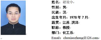 个人简历及学术经历:2001.7毕业于淮阴师范学院,获化学理学学士学位;2004.3毕业于天津大学,获物理化学理学硕士学位;2007.…[详细]