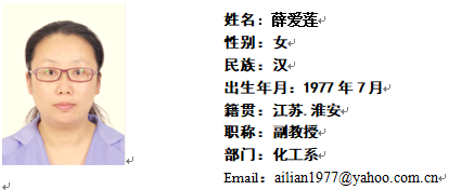 个人简历及学术经历:1993年6月毕业于长春工业大学化学工程学院,获学士学位;2002年6月毕业于延边大学理学院,获硕士学…[详细]